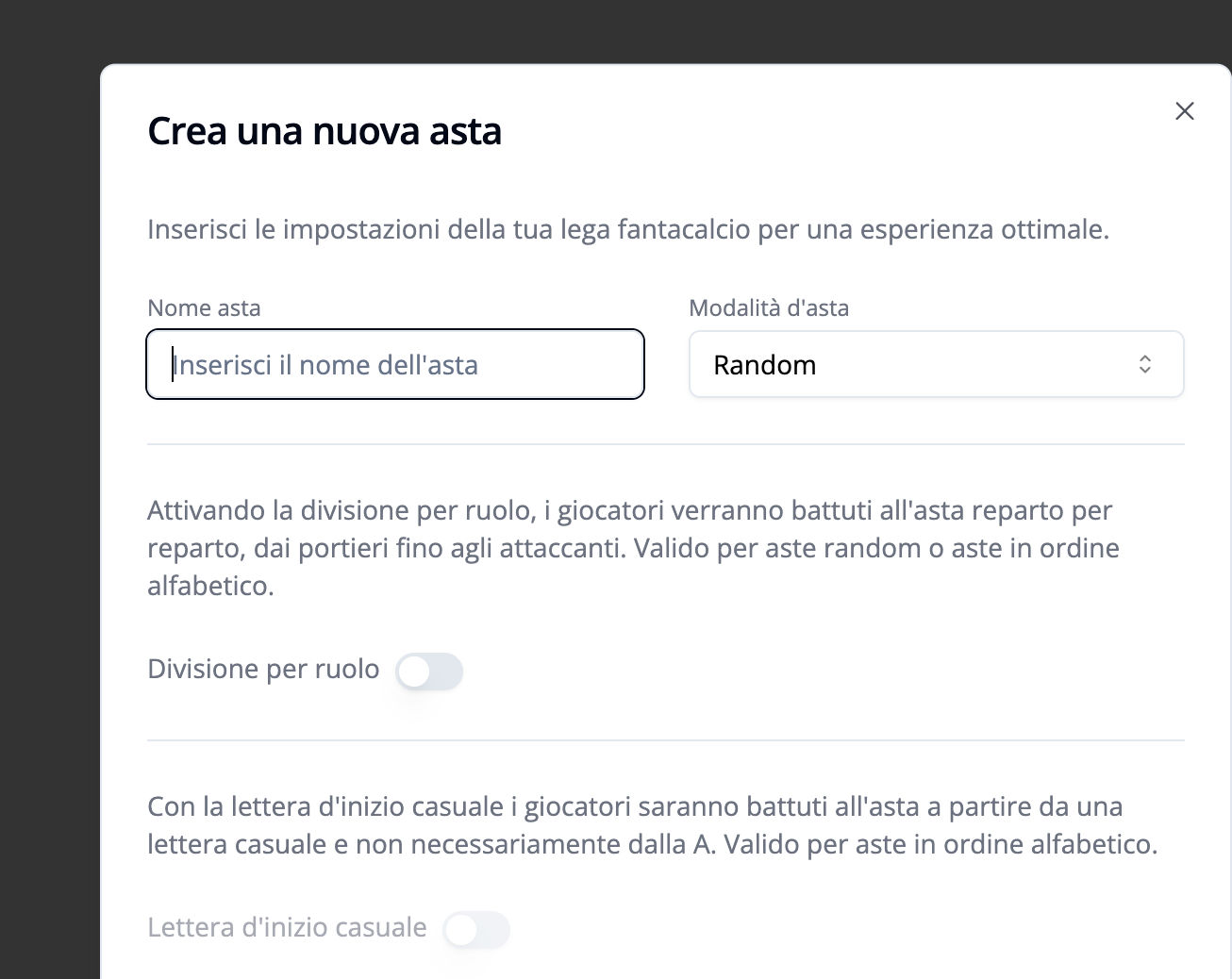 Personalizza l'asta secondo le modalità che preferisci per iniziare subito a sfidare i tuoi amici.